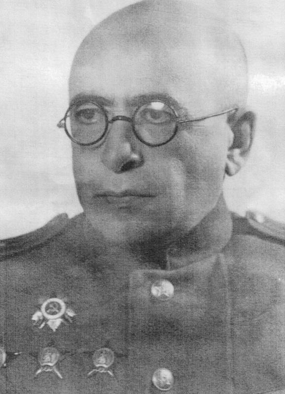 Лейзеровский Абрам Моисеевич, 1883 – 1955 гг. С первых дней войны назначен начальником Хирургического Полевого Подвижного госпиталя №626. Майор медицинской службы, прошел всю войну с 22 Армией и при прорыве блокады Ленинграда и на Волховском фронте. Награжден: орденами «Отечественной войны 2 степени», «Красная Звезда», медалью «За оборону Ленинграда». Фото послевоенное.