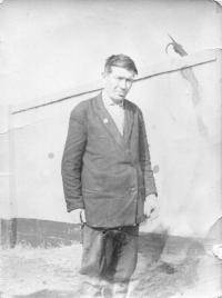 Родился 19 июня 1916 года. В 1936 году призван в армию. В 1939 году воевал на Финской войне. С 1941 года - Отечественная война. Воевал на Ленинградском фронте, артиллеристом. В блокаду охраняли Ленинград. Дважды ранен: пулевое и осколочное. Три контузии. Вернулся в 1945 году. Награжден орденом Красной Звезды и медалями. После контузий часто лежал в госпитале. На фото - стоит справа.